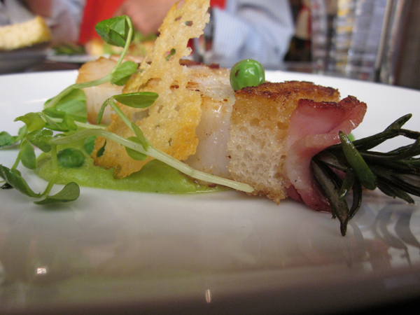Entrées Three entrée courses were: Snapper Chowder; Crispy duck, apple, watercress, hazelnut & witlof salad with vincotto dressing; and Rosemary spindini scallops, with pancetta, bread. Accompanied by Rosabrook 2009 Chardonnay, Margaret River, WA.